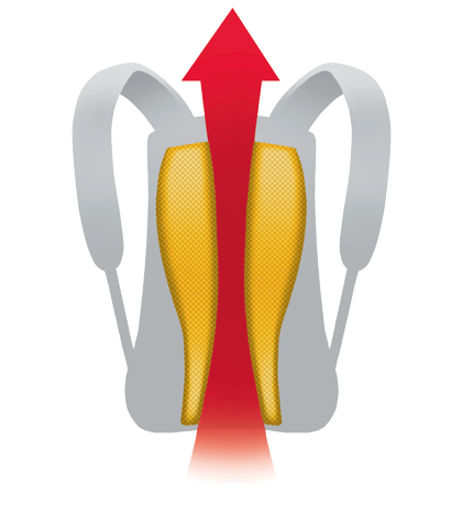 Rugzakken met het rugzak-draagsysteem ACS Tight (Air Control System) sluiten aan op het lichaam, bieden bewegingsvrijheid en een centraal ventilatiekanaal. Zo wordt verwarmde lucht effectief afgevoerd.